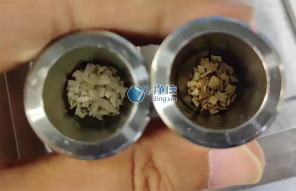 上圖為1分鐘的研磨效果,已經(jīng)完全研磨至粉末。效果非常好,蠶繭研磨一定要凍液氮,因?yàn)樾Q繭韌性極高,常溫研磨難度極高,之前老師了解過(guò)刀式研磨儀損耗也多,而且產(chǎn)熱容易變質(zhì),后續(xù)老師還會(huì)做到更多生物兼容性材料如滌綸、ps、pcl等等,凈信研磨儀都完全能勝任,經(jīng)過(guò)多次了解和對(duì)比所以老師們選用凈信研磨儀代替人工處理。效率高,效果好,很好的解決了老師的研磨問(wèn)題。