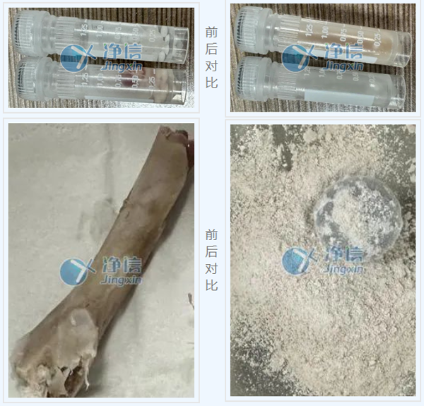 與實驗前對比,組織塊成均勻漿狀,骨頭呈細膩粉末狀。在生物提取實驗中,我們需要對樣品進行研磨,研磨的方式一般可分為干磨和濕磨,但無論哪一種方法,呈現(xiàn)的效果需要足夠均勻和細膩才能保證后續(xù)提取實驗的成功率。本實驗中的樣品均已達到實驗要求,可用于后續(xù)提取實驗。