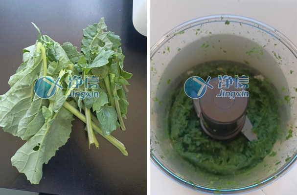4. 將油菜葉子剪成段狀,放進(jìn)研磨杯