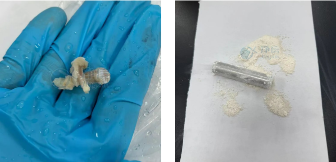 經(jīng)全自動液氮冷凍研磨儀處理后的大鼠股骨,成功變?yōu)榧毮伔勰瑹o肉眼可見顆粒。后續(xù)檢測完全符合實驗要求。