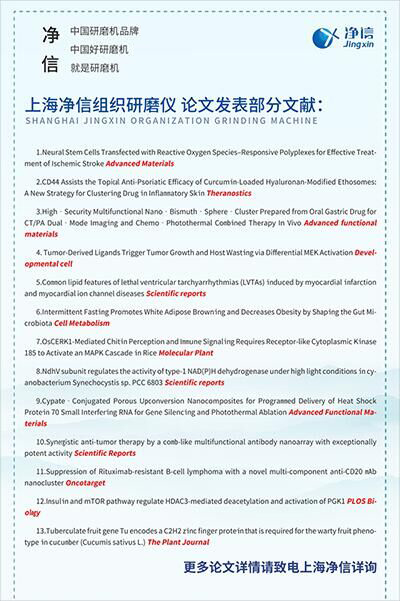 上海凈信發(fā)明的"Tissuelyser系列多樣品組織研磨機(jī)“和”JXFSTPRP系列三維運動的全自動樣品快速研磨機(jī)",冷凍研磨機(jī),高能研磨機(jī),臼式研磨機(jī)等產(chǎn)品,先后在中科院、農(nóng)科院、醫(yī)科院等高等研究院所以及上海交通大學(xué)、復(fù)旦大學(xué)、浙江大學(xué)、香港中文大學(xué)、香港理工大學(xué)等大專院校的國家重點實驗室受到青睞而被廣泛采用。依托強大的研發(fā)和生產(chǎn)服務(wù)能力,多年來已成功為數(shù)萬個實驗室提供服務(wù)。