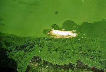 富營(yíng)養(yǎng)化會(huì)影響水體的水質(zhì),會(huì)造成水的透明度降低,使得陽(yáng)光難以穿透水層,從而影響水中植物的光合作用,可能造成溶解氧的過(guò)飽和狀態(tài),造成魚(yú)類(lèi)大量死亡。同時(shí),因?yàn)樗w富營(yíng)養(yǎng)化,水體表面生長(zhǎng)著以藍(lán)藻、綠藻為優(yōu)勢(shì)種的大量水藻,形成一層“綠色浮渣”,致使底層堆積的有機(jī)物質(zhì)在厭氧條件分解產(chǎn)生的有害氣體和一些浮游生物產(chǎn)生的生物毒素也會(huì)傷害魚(yú)類(lèi)。因富營(yíng)養(yǎng)化水中含有硝酸鹽和亞硝酸鹽,人畜長(zhǎng)期飲用這些物質(zhì)含量超過(guò)一定標(biāo)準(zhǔn)的水,也會(huì)中毒致病。