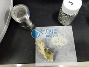 將海底珊瑚剪成小塊放入50毫升鋼罐中,加入專用研磨珠擰緊鋼罐后放入研磨機里,調(diào)整好參數(shù)待結(jié)束后即可得到實驗結(jié)果。