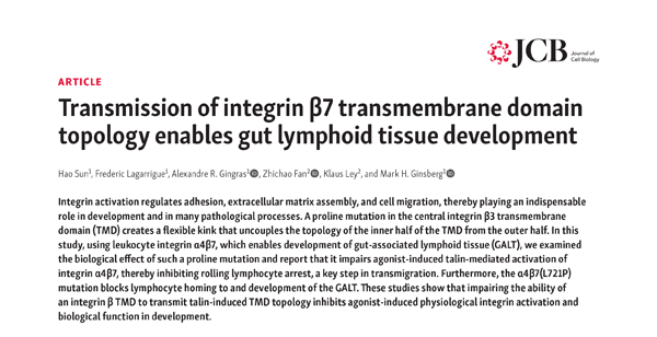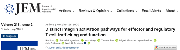 2020年10月27日,加州大學(xué)圣地亞哥分校醫(yī)學(xué)院,聯(lián)合法國(guó)圖盧茲大學(xué)和康涅狄格大學(xué)衛(wèi)生院的科學(xué)家在Journal of Experimental Medicine(JEM) 上在線發(fā)表了題為Distinct Integrin Activation Pathways for Effector and Regulatory T cell Trafficking and Function的工作(來(lái)自作者為孫昊博士)。