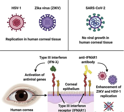 美國《細(xì)胞報告》雜志近期發(fā)表的一項研究表明,人類眼角膜對寨卡病毒和單純皰疹病毒1型易感,但似乎對新冠病毒有抵抗力。在此項研究中,專家們使用了25份角膜組織進(jìn)行實驗,其中既包括人類角膜組織,也有實驗鼠供體的角膜組織,并將它們暴露于三種不同的病毒中,分別是:ZIKV、HSV-1和新冠病毒,結(jié)果發(fā)現(xiàn)新冠病毒沒有在角膜中繁殖。至于人角膜和結(jié)膜如何能夠抵抗新冠病毒,該研究團(tuán)隊還不能完全確定。