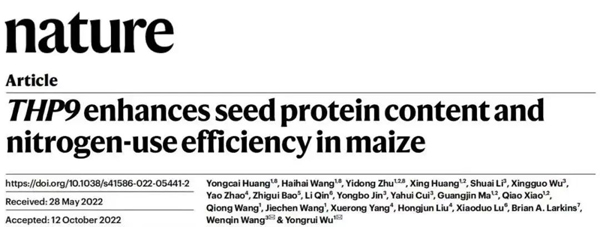 北京時(shí)間2022年11月17日,中國(guó)科學(xué)院分子植物科學(xué)****中心巫永睿研究團(tuán)隊(duì)與上海師范大學(xué)王文琴研究團(tuán)隊(duì)合作在Nature上發(fā)表了題為 “THP9 enhances seed protein content and nitrogen-use efficiency in maize”的研究論文。