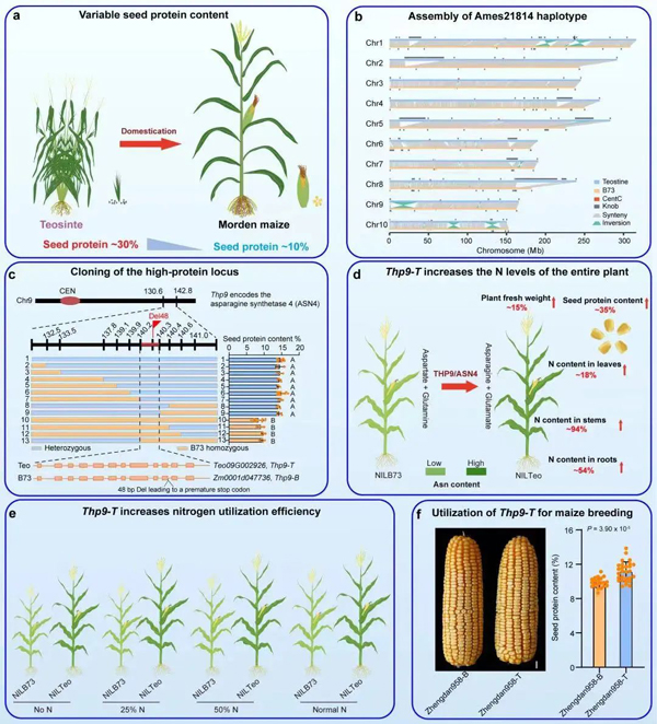 經(jīng)過(guò)10年堅(jiān)持不懈的努力,科研人員終于從野生玉米中克隆了控制玉米高蛋白品質(zhì)形成和氮素高效利用的關(guān)鍵變異基因Teosinte High Protein 9 (THP9)。
