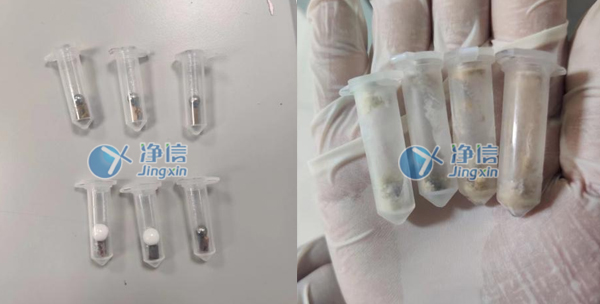 上圖為1分鐘的研磨效果,已經(jīng)完全研磨完成,達(dá)到老師預(yù)期效果。研磨管一次可以做24個(gè)樣品,經(jīng)過全自動冷凍組織研磨儀的研磨處理后,蘋果樹枝條能夠快速被研磨成細(xì)小的顆粒,從而方便后續(xù)的分析。同時(shí),該研磨儀的運(yùn)行過程中不會引入外界污染,從而保證了樣品的純度。經(jīng)過多次了解和對比所以老師們選用凈信研磨儀代替人工處理。效率高,效果好。成功的解決了老師的研磨問題。