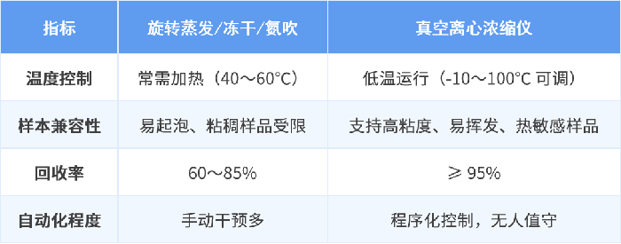 傳統(tǒng)方法與真空離心濃縮儀在多個(gè)維度的表現(xiàn)對(duì)比