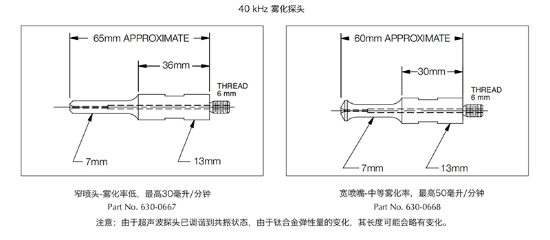 40 kHz: | 零件號(hào)630-0667或630-0668 |